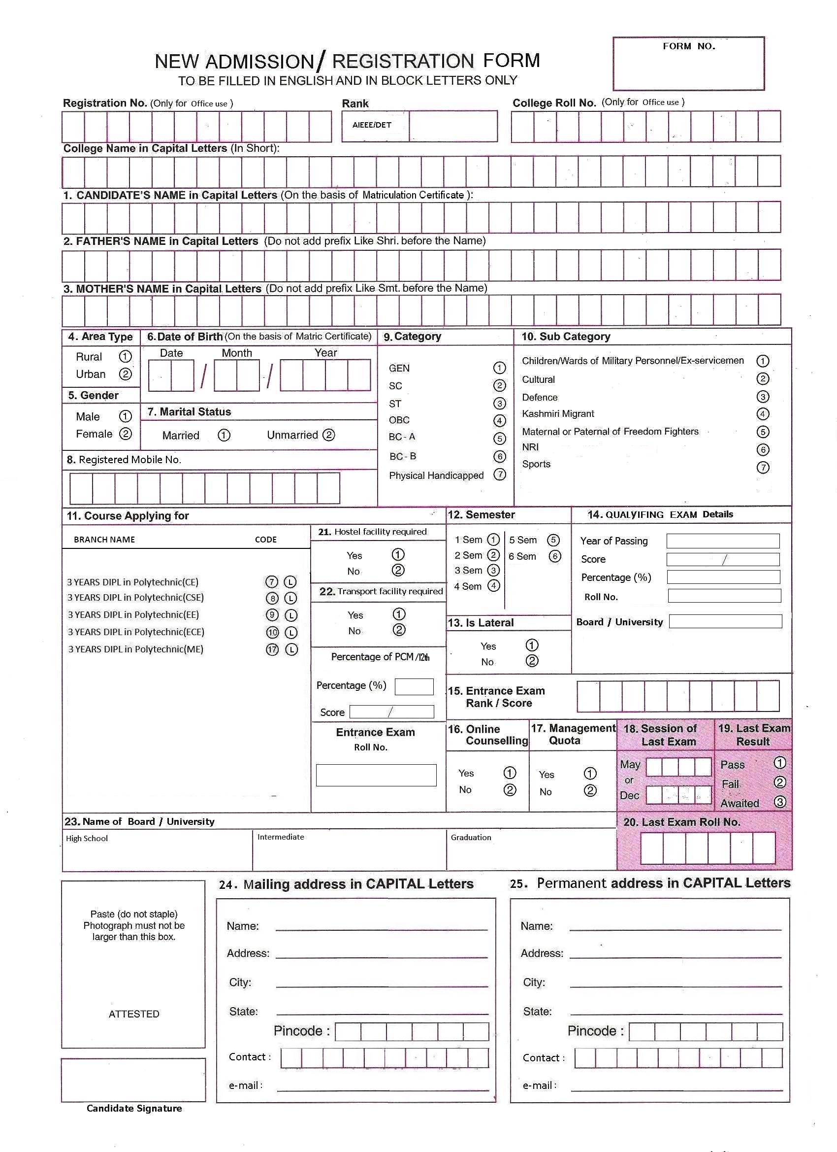 | 1. | Admission Application Form |